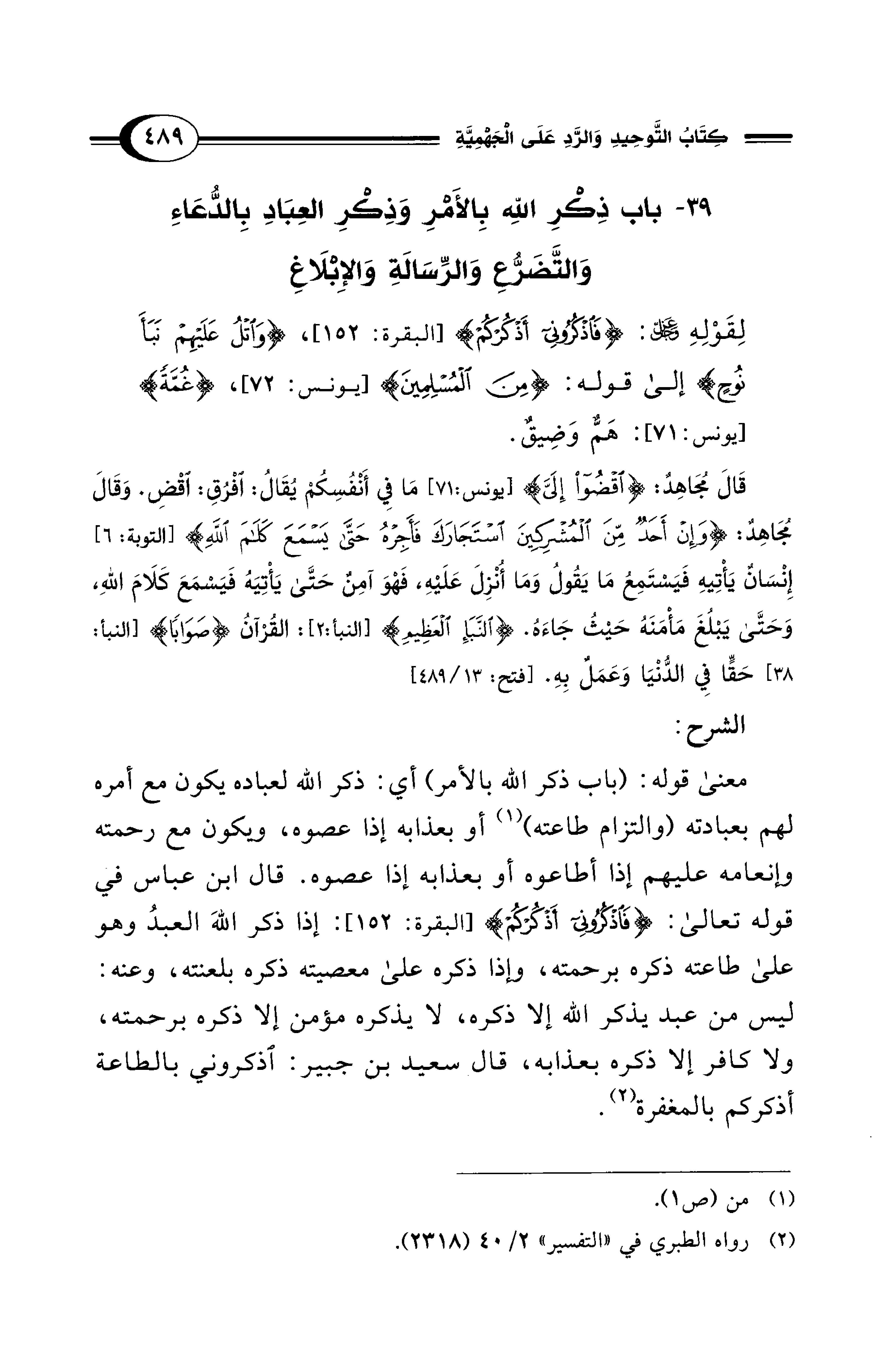 39 - باب ذِكْرِ اللهِ بِالأَمْرِ وَذِكْرِ العِبَادِ بِالدُّعَاءِ وَالتَّضَرُّعِ وَالرِّسَالَةِ وَالإِبْلاَغِ