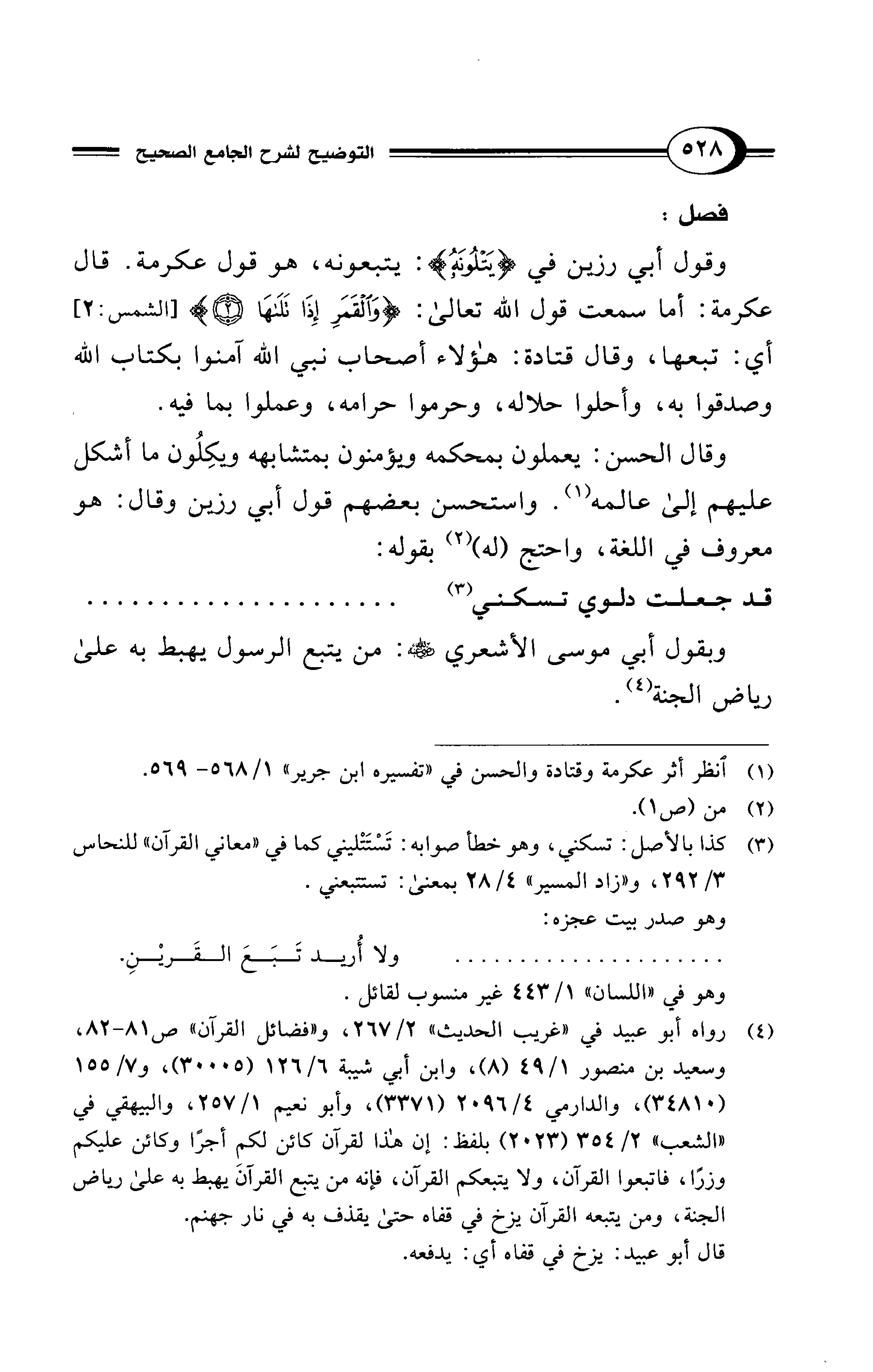 ................... ... ولا أُريد تَبَعَ القَريْنِ.