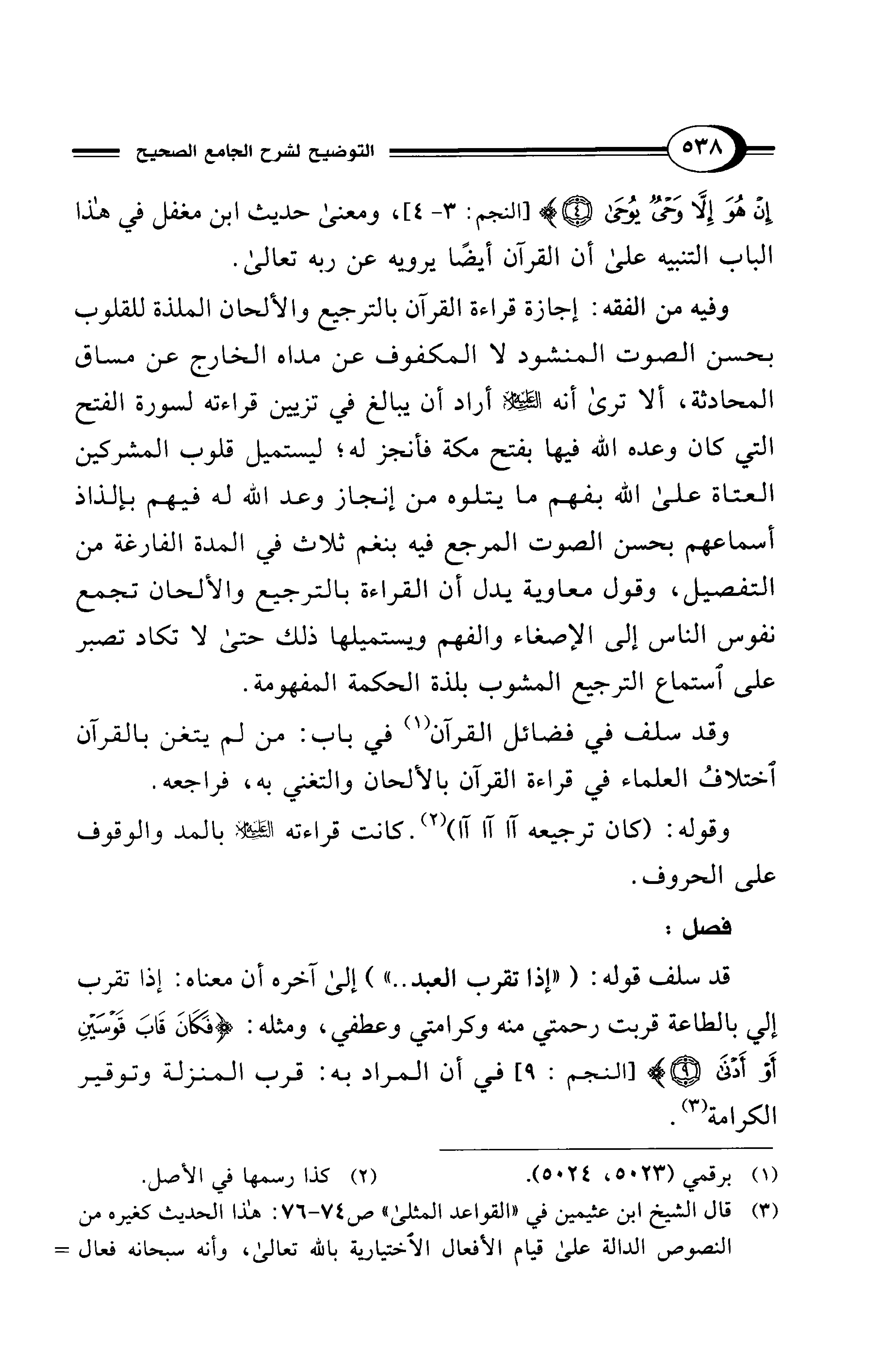 {إِنْ هُوَ إِلَّا وَحْيٌ يُوحَى (4)} [النجم: 3 - 4]، ومعني حديث ابن مغفل في هذا الباب التنبيه على أن القرآن أيضًا يرويه عن ربه تعالى.