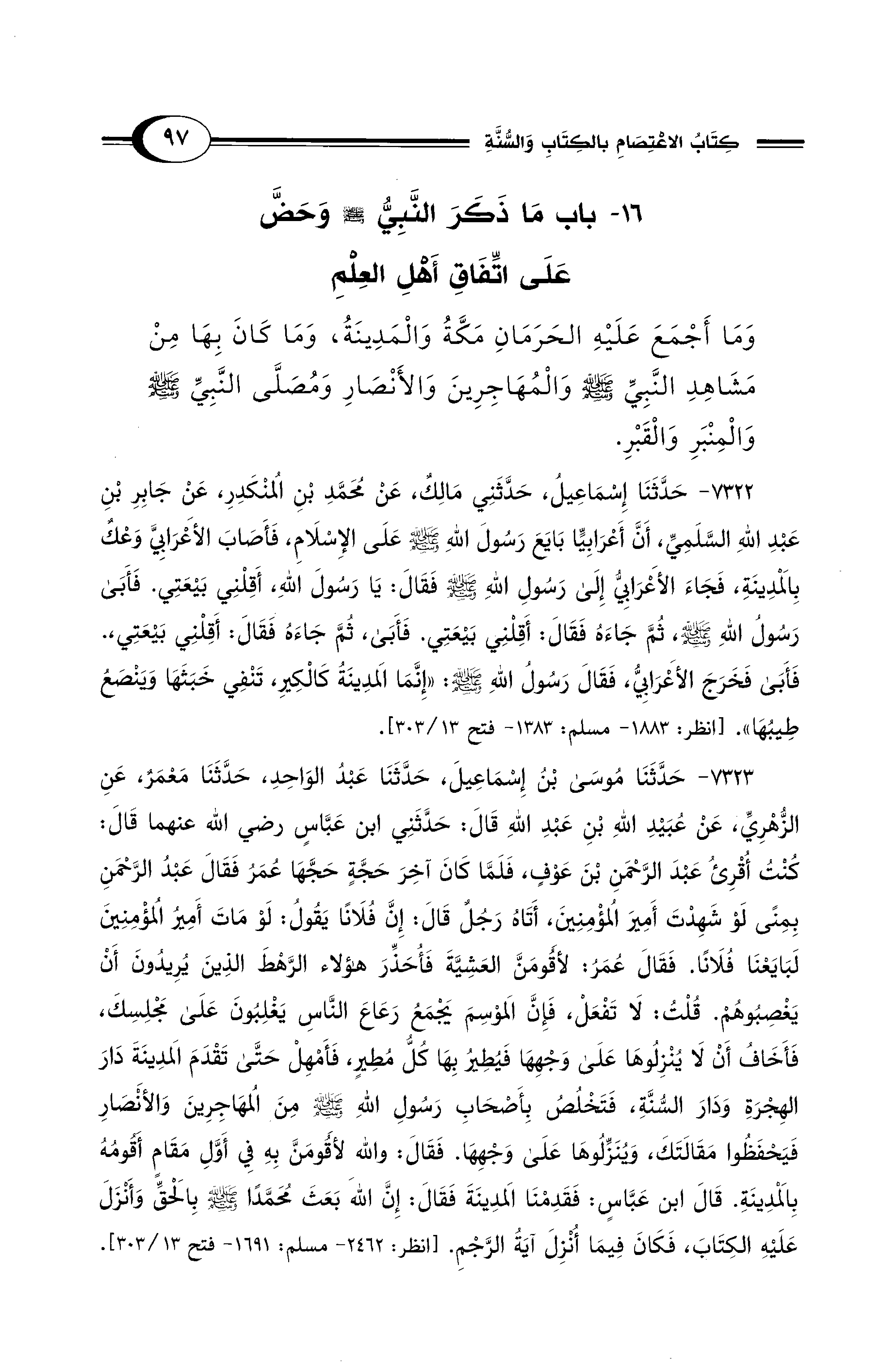 16 - باب مَا ذَكَرَ النَّبِيُّ - صلى الله عليه وسلم - وَحَضَّ عَلَى اتِّفَاقِ أَهْلِ العِلْمِ