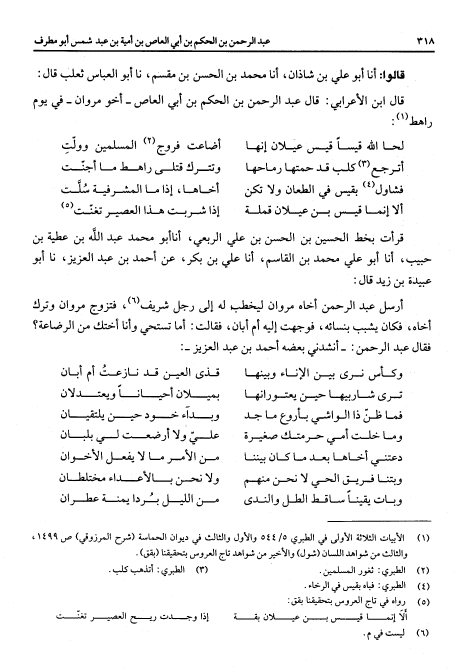(1) الابيات الثلاثة الاولى في الطبري 5 / 544 والاول والثالث في ديوان الحماسة (شرح المرزوقي) ص 1499، والثالث من شواهد اللسان (شول) والاخير من شواهد تاج العروس بتحقيقنا (بقق)