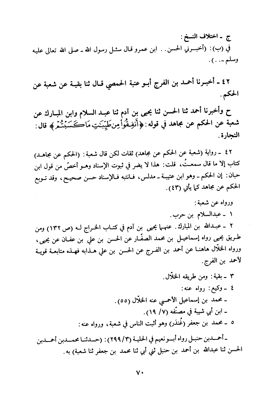 41 - أَخْبَرَنَا أَحْمَدُ بْنُ الْفَرَجِ أَبُو عُتْبَةَ الْحِمْصِيُّ، قَالَ: ثنا بَقِيَّةُ، عَنْ شُعْبَةَ، عَنِ الْحَكَمِ، وَأَخْبَرَنَا أَحْمَدُ، ثنا الْحَسَنُ، ثنا يَحْيَى بْنُ آدَمَ، ثنا عَبْدُ السَّلَامِ، وَابْنُ الْمُبَارَكِ، عَنْ شُعْبَةَ، عَنِ الْحَكَمِ، عَنْ مُجَاهِدٍ، فِي قَوْلِهِ: {§كُلُوا مِنْ طَيِّبَاتِ مَا رَزَقْنَاكُمْ} [البقرة: 57] قَالَ: التِّجَارَةُ
