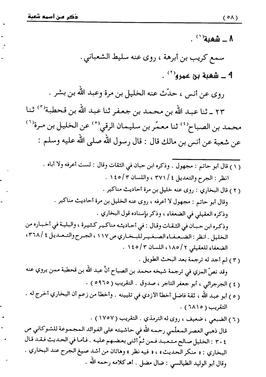 §شُعْبَةُ سَمِعَ كُرَيْبَ بْنَ أَبْرَهَةَ، رَوَى عَنْهُ سَلِيطٌ الشَّعْبَانِيُّ
