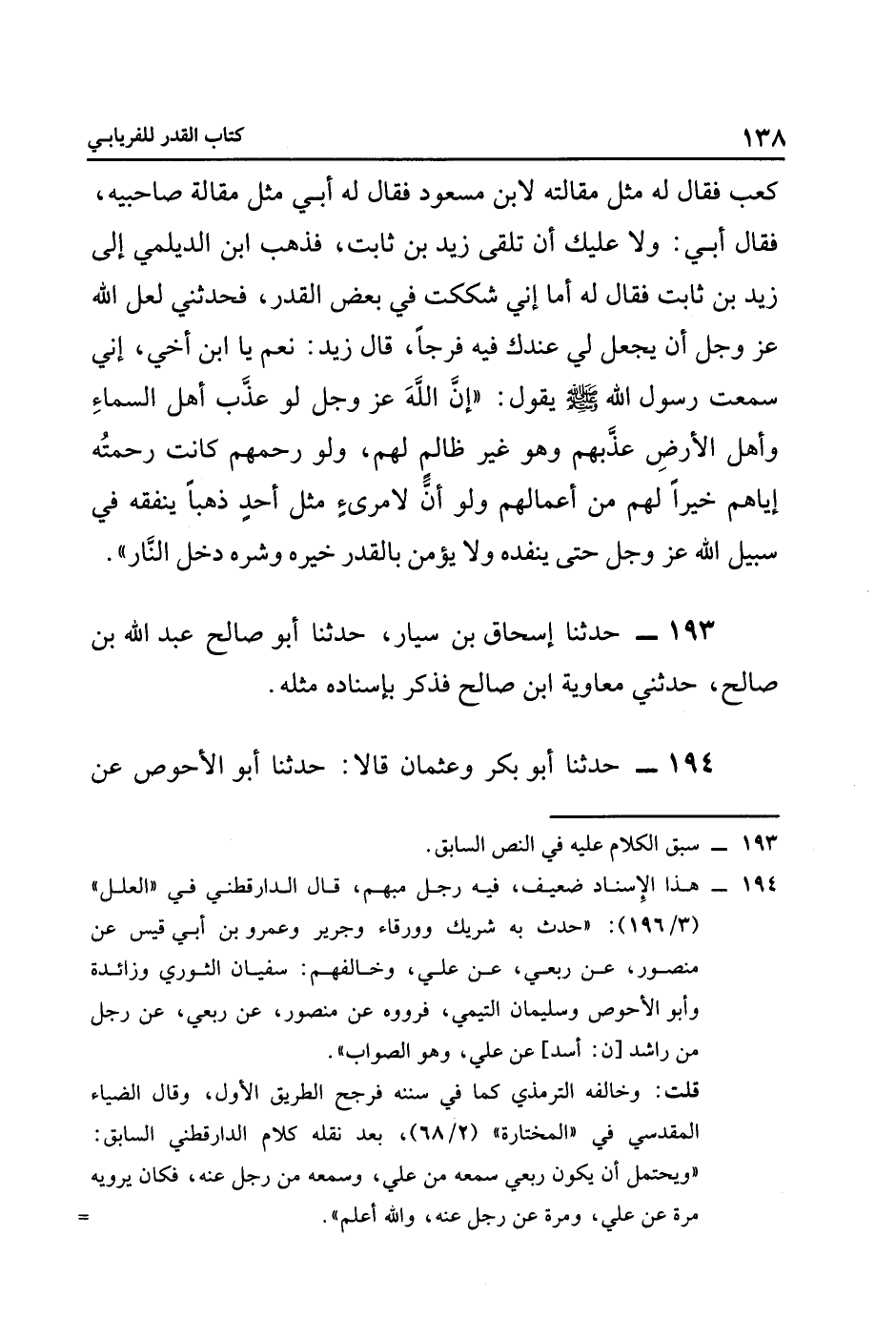 ١٩٤ حَدَّثَنَا أَبُو بَكْرٍ، وَعُثْمَانُ، قَالَا: حَدَّثَنَا أبو الأحوص عن