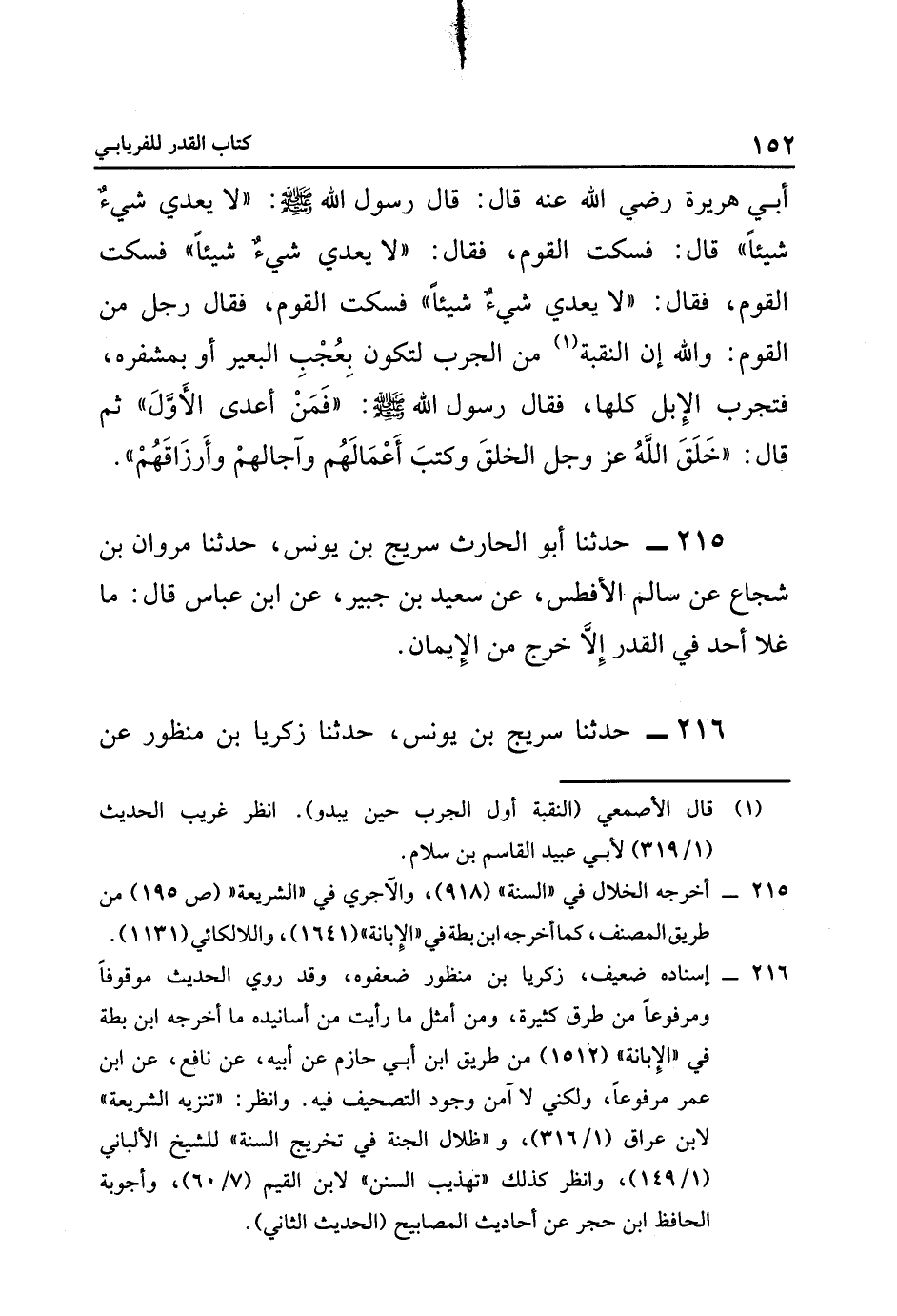 ٢١٥- أخرجه الخلال في: السنة: ٩١٨، والآجري في: الشريعة: صـ ١٩٥ من طريق المصنف، كما أخرجه ابن بطة في: الإبانة: ١٦٤١، واللالكائي: ١١٣١.
