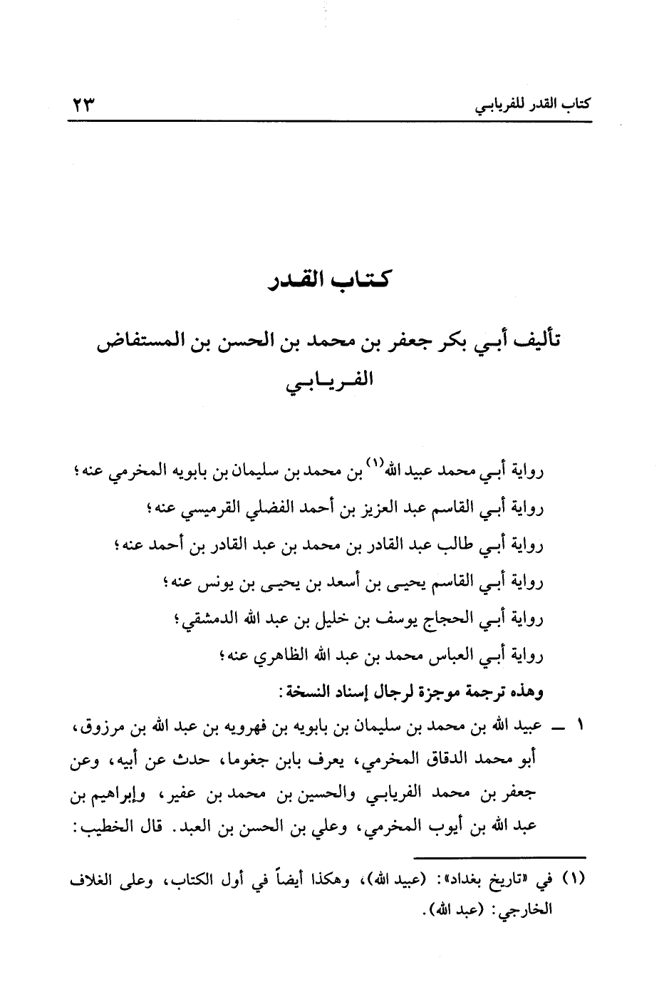 تأليف أبي بَكْرٍ, جَعْفَرِ بْنِ مُحَمَّدِ بْنِ الْحَسَنِ بْنِ المستفاض الفريابي,