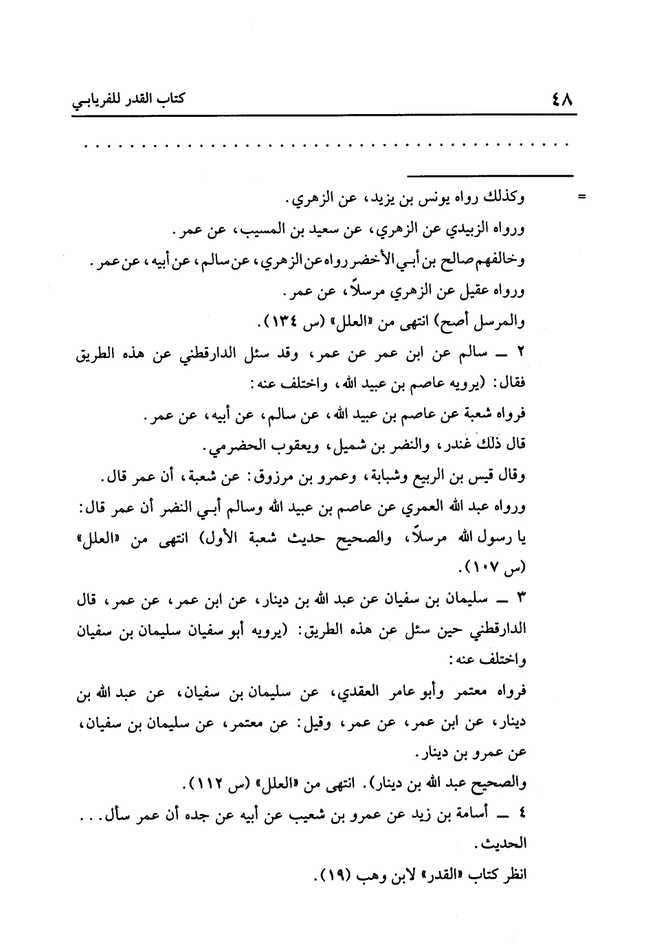٢ سالم عن ابن عمر, عن عمر، وقد سئل الدارقطني عن هذه الطريق فقال: يرويه عاصم بن عبيد الله، واختلف عنه: