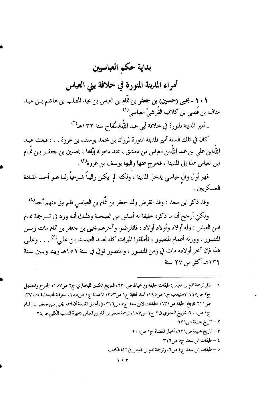 101 - يحيى (حسين) بن جعفر بن تمام بن العباس بن عبد المطلب بن هاشم بن عبد مناف بن قُصي بن كلاب القرشي العباسي (1)