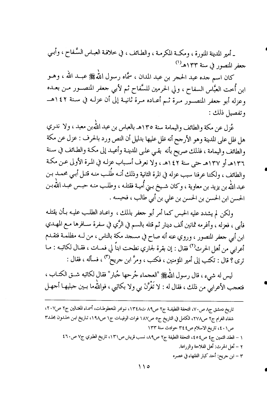 1 - العقد الثمين ج4 ص454، التحفة اللطيفة ج2 ص89، نسب قريش ص131، تاريخ الطبري ج7 ص460.