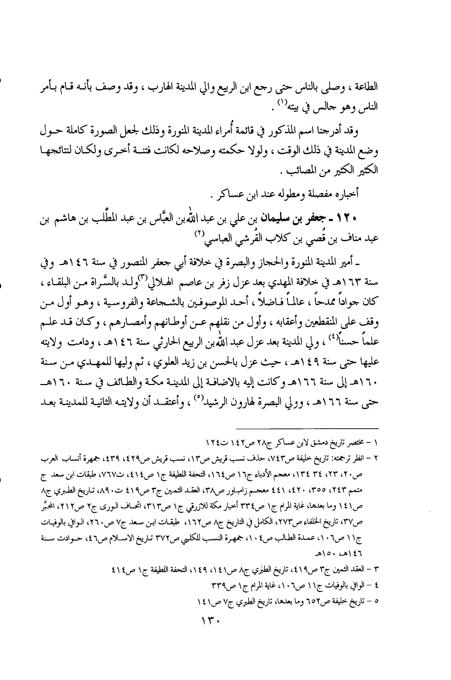 120 - جعفر بن سليمان بن علي بن عبد الله بن العباس بن عبد المطلب بن هاشم بن عبد مناف بن قُصي بن كلاب القرشي العباسي (2).