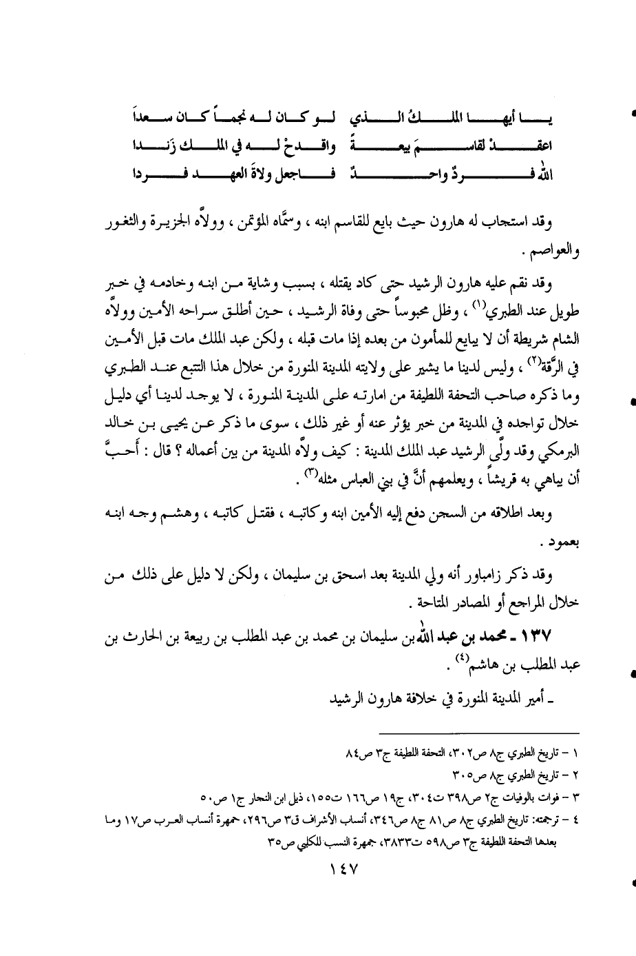 137 - محمد بن عبد الله بن سليمان بن محمد بن عبد المطلب بن ربيعة بن الحارث بن عبد المطلب بن هاشم (4).
