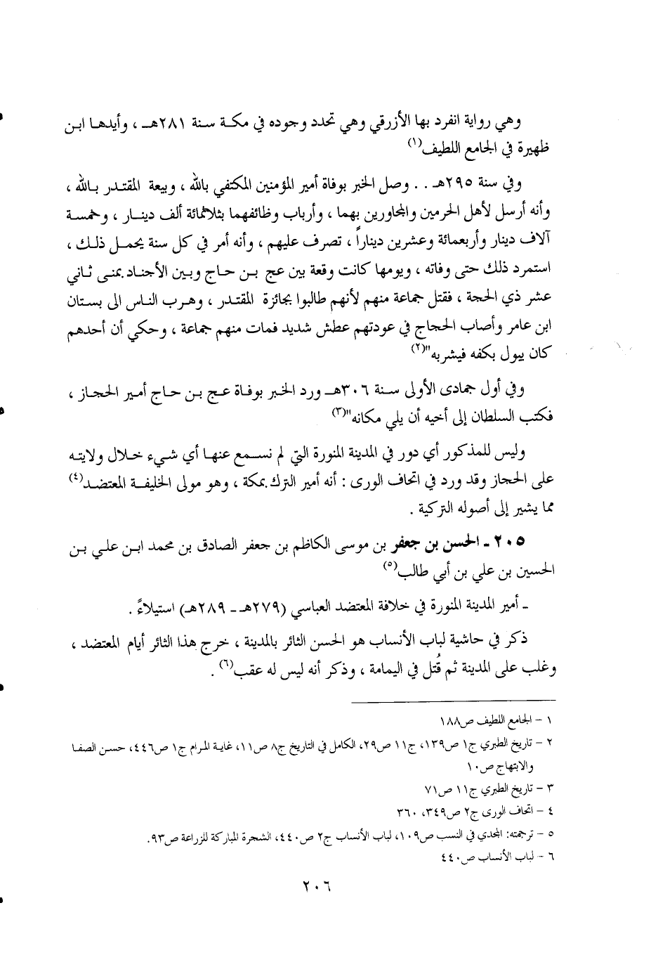 205 - الحسن بن جعفر بن موسى الكاظم بن جعفر الصادق بن محمد ابن علي بن الحسين بن علي بن أبي طالب (5).