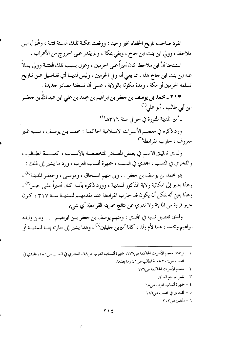 1 - ترجمته: معجم الأسرات الحاكمة ص177، جمهرة أنساب العرب ص68، الفخري في النسب ض186، المجدي في النسب ص304، عمدة الطالب ص46، وما بعدها. 2 - معجم الأسرات الحاكمة ص177. 3 - نفس المرجع السابق. 4 - جمهرة أنساب العرب ص68. 5 - الفخري في النسب ص186. 6 - المجدي ص303.