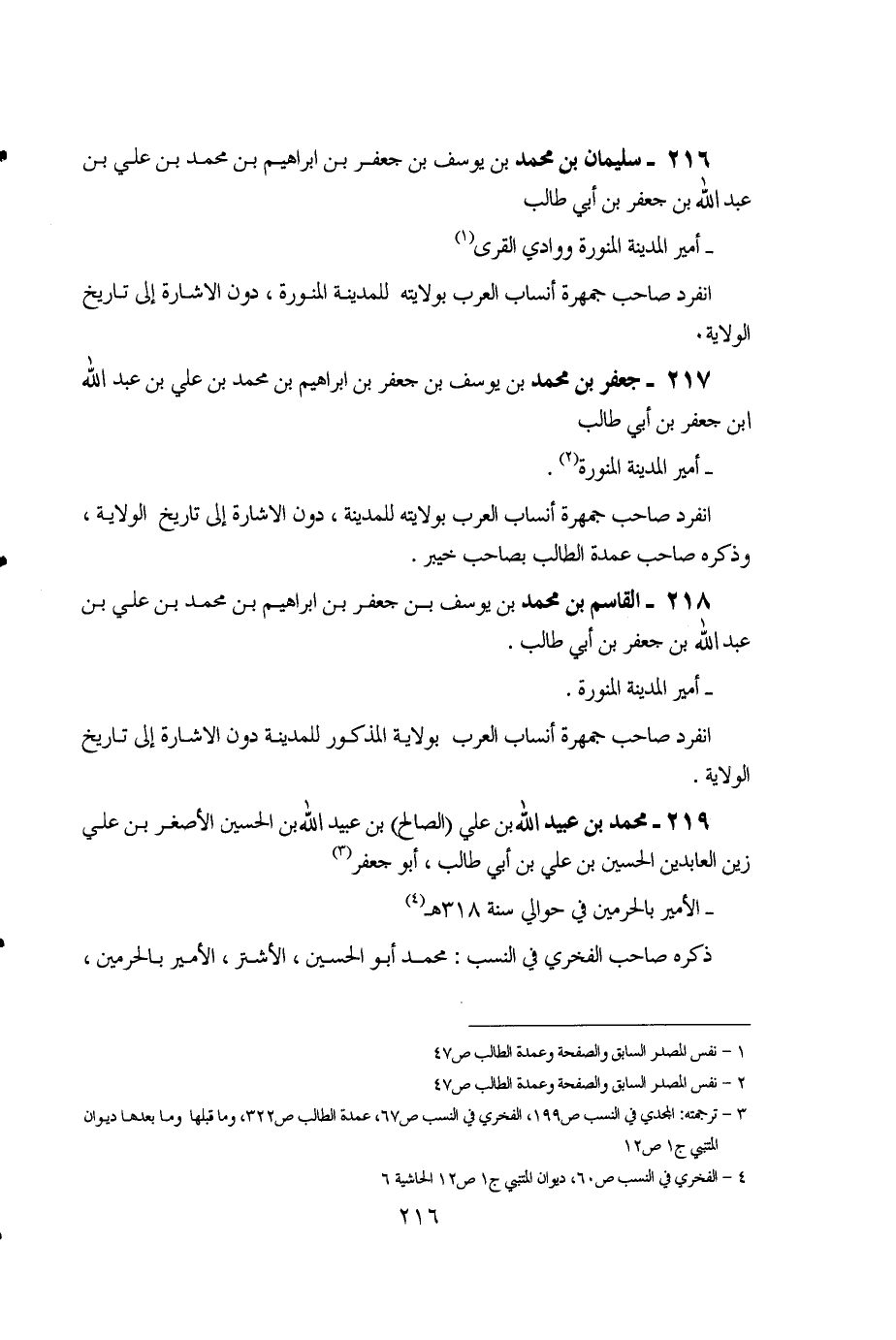 216 - سليمان بن محمد بن يوسف بن جعفر بن إبراهيم بن محمد بن علي بن عبد الله بن جعفر بن أبي طالب.