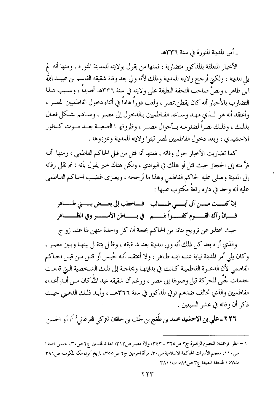 226 - علي بن الأخشيد محمد بن طُغج بن جُف بن خاقان التركي الفرغاني (1)، أبو الحسن ...