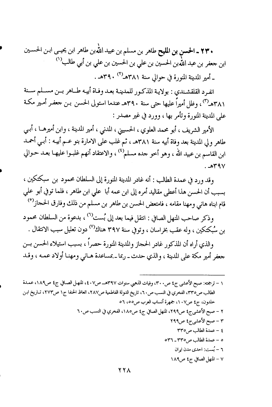 230 - الحسن بن المليح طاهر بن مسلم بن عبيد الله بن طاهر ابن يحيى ابن الحسين ابن جعفر بن عبد الله بن الحسين بن علي بن الحسين بن علي بن أبي طالب (1).