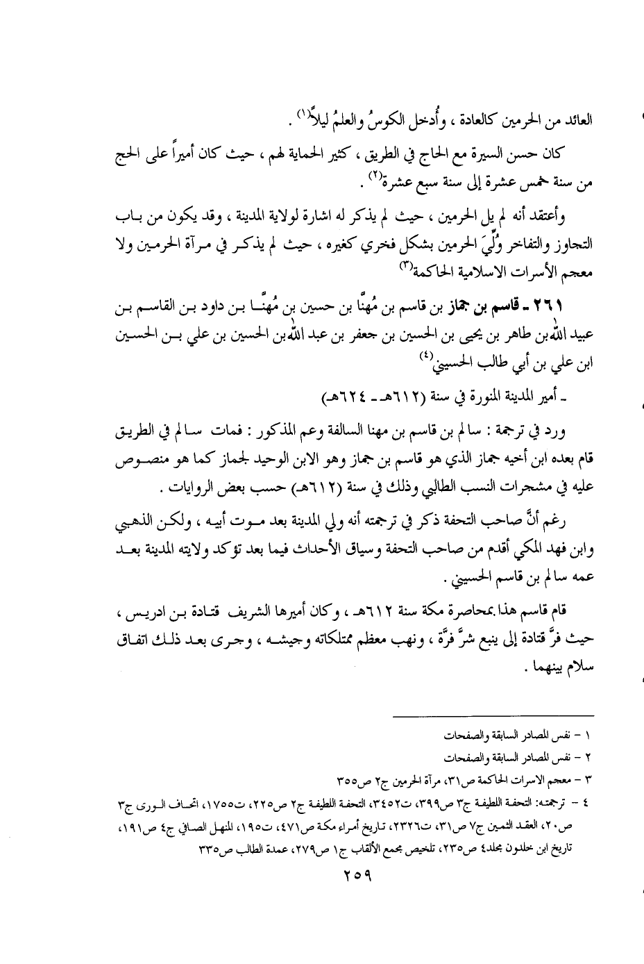 261 - قاسم بن جماز بن قاسم بن مهنا بن حسين بن مهنا بن داود بن القاسم بن عبيد الله بن طاهر بن يحيى بن الحسين بن جعفر بن عبد الله بن الحسين بن علي بن الحسين بن علي بن أبي طالب الحسيني (4).