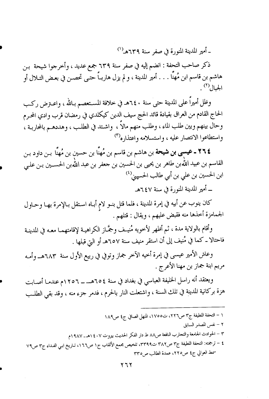 264 - عيسى بن شيحة بن هاشم بن قاسم بن مهنا بن حسين بن مهنا بن داود بن القاسم بن عبيد الله بن طاهر بن يحيى بن الحسين بن جعفر بن عبد الله بن الحسين بن علي ابن الحسين بن علي بن أبي طالب الحسيني (4).