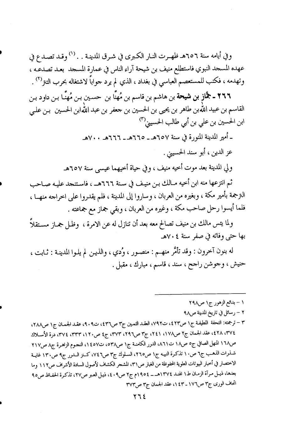 266 - جماز بن شيحة بن هاشم بن قاسم بن مهنا بن حسين بن مهنا بن داود بن القاسم بن عبيد الله بن طاهر بن يحيى بن الحسين بن جعفر بن عبد الله ابن الحسين بن علي ابن الحسين بن علي بن أبي طالب الحسيني (3).