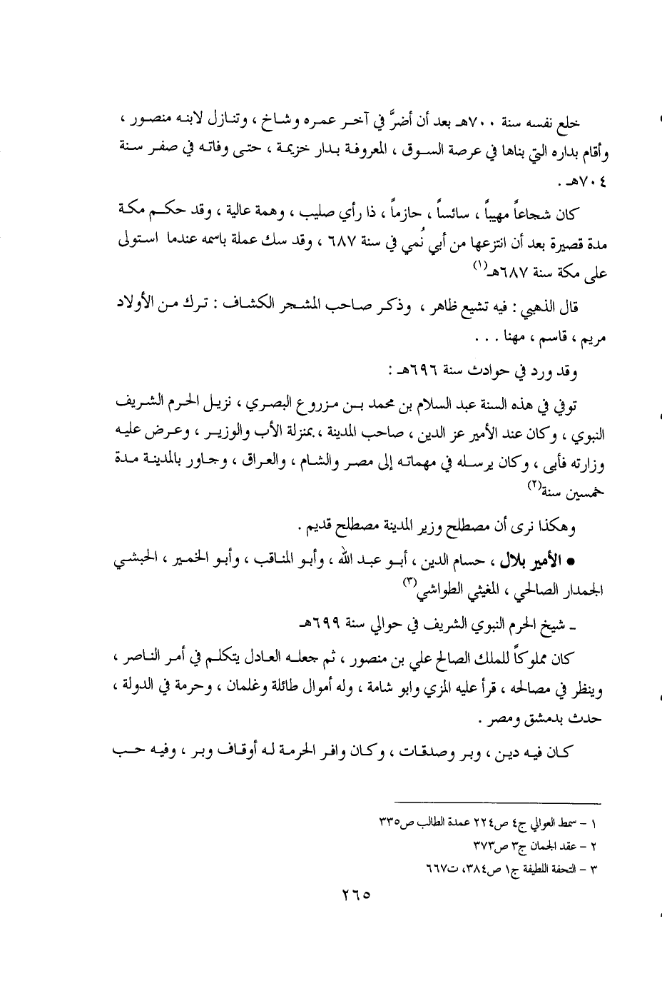 * الأمير بلال، حسام الدين، أبو عبد الله، وأبو المناقب، وأبو الخمير، الحبشي الجمدار الصالحي، المغيثي الطواشي (3)