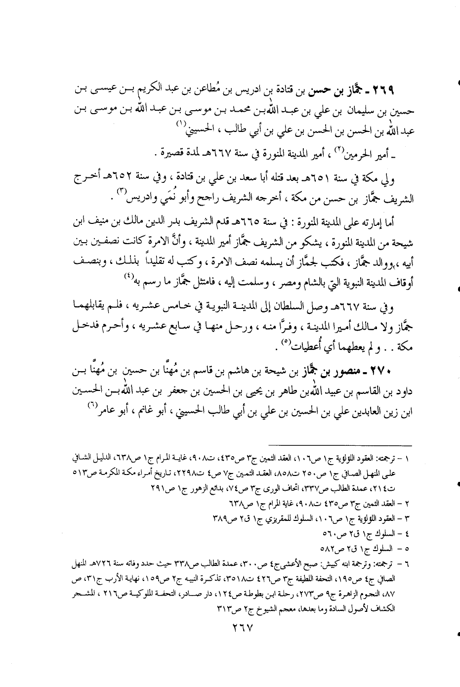 270 - منصور بن جماز بن شيحة بن هاشم بن قاسم بن مهنا بن حسين بن مهنا بن داود بن القاسم بن عبيد الله بن طاهر بن يحيى بن الحسين بن جعفر بن عبد الله بن الحسين ابن زين العابدين علي بن الحسين بن علي بن أبي طالب الحسيني، أبو غانم، أبو عامر (6) ....