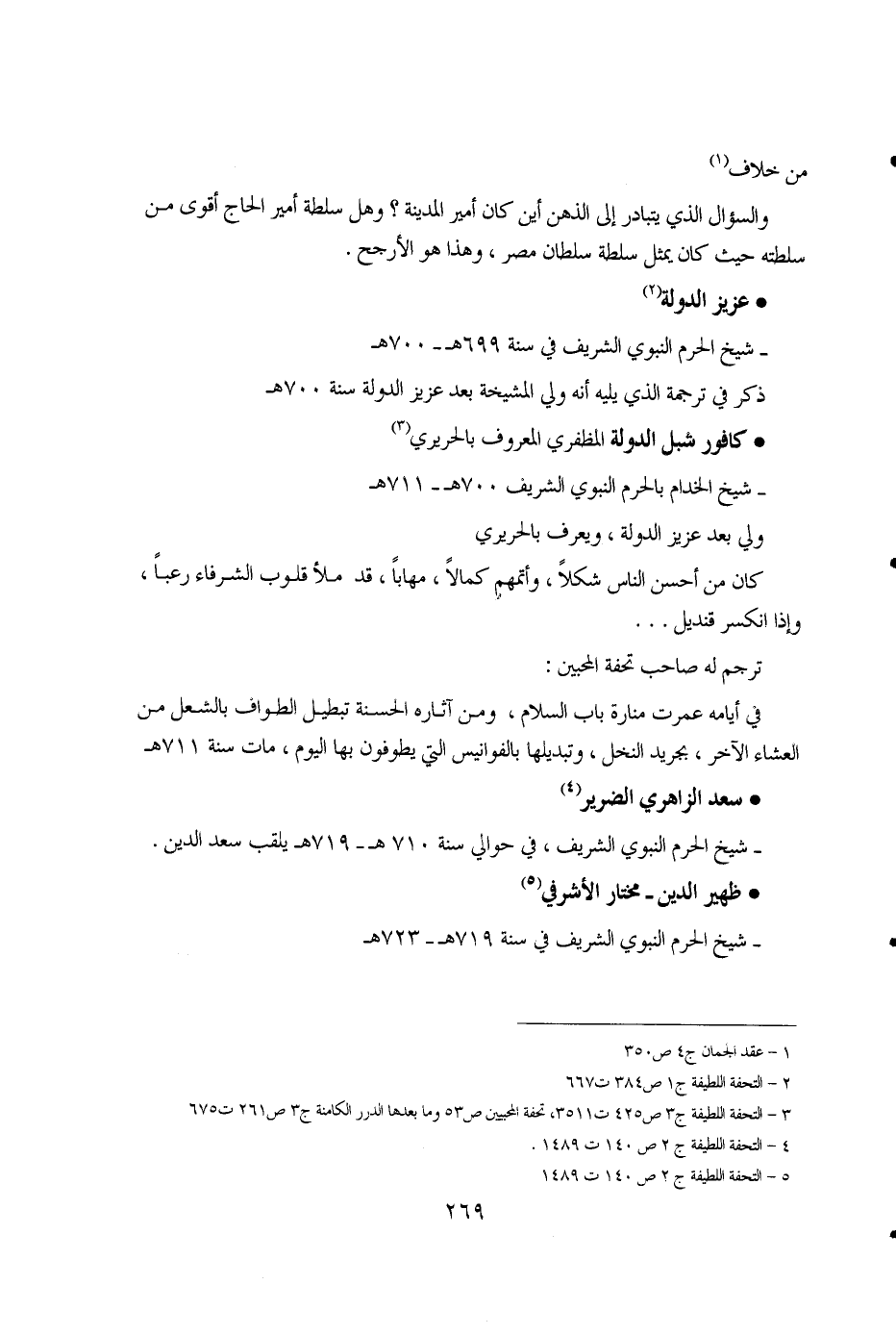 1 - عقد الجمان ج4 ص350. 2 - التحفة اللطيفة ج1 ص384 ت667. 3 - التحفة اللطيفة ج3 ص425 ت3511، تحفة المحبين ص53 وما بعدها الدرر الكامنة ج3 ص261 ت675. 4 - التحفة اللطيفة ج2 ص140 ت1489. 5 - التحفة اللطيفة ج2 ص140 ت1489.