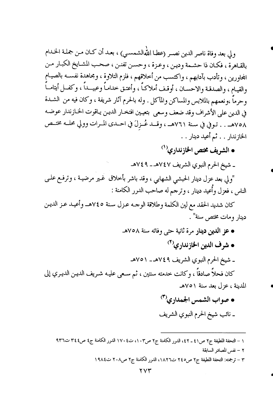 1 - التحفة اللطيفة ج2 ص41 - 42، الدرر الكامنة ج2 ص103، ت1704، الدرر الكامنة ج4 ص344، ت936. 2 - نفس المصادر السابقة. 3 - ترجمته: التحفة اللطيفة ج2 ص245، ت1826، الدرر الكامنة ج2 ص208، ت1984.