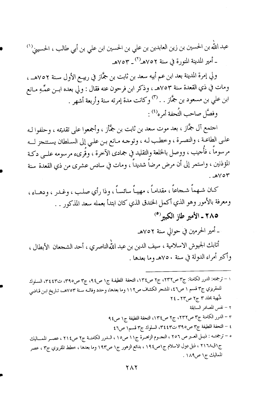 282 ... عبد الله بن الحسين بن زين العابدين بن علي بن الحسين بن علي بن أبي طالب، الحسيني (1)