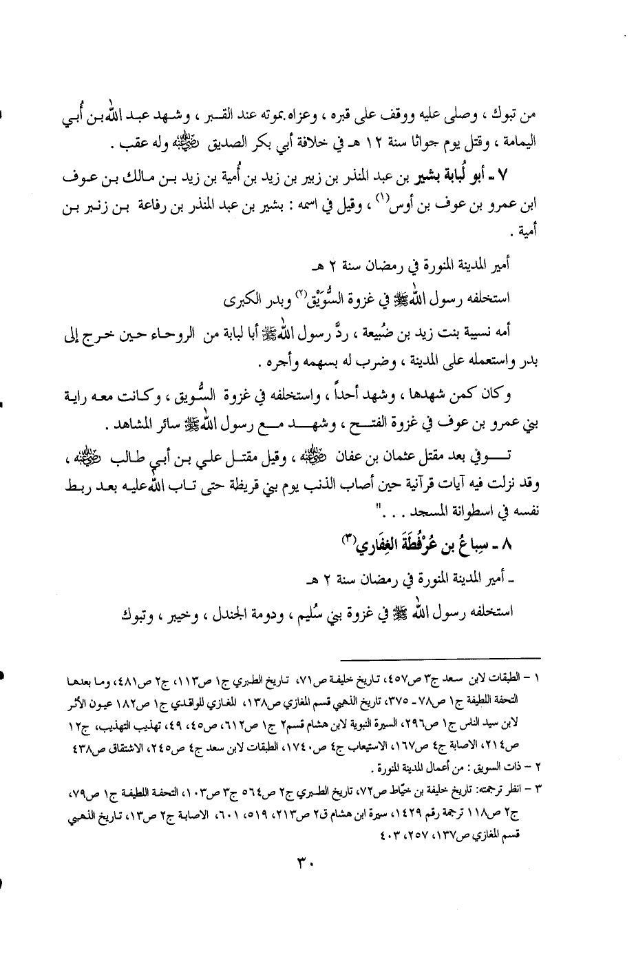 3 - انظر ترجمته: تاريخ خليفة بن خيّاط ص72، تاريخ الطبري ج2 ص564 ج3 ص103، التحفة اللطيفة ج1 ص79، ج2 ص118 ترجمة رقم 1429، سيرة ابن هشام ق2 ص213، 519، 601، الإصابة ج2 ص13، تاريخ الذهبي قسم المغازي ص 137، 257، 403.