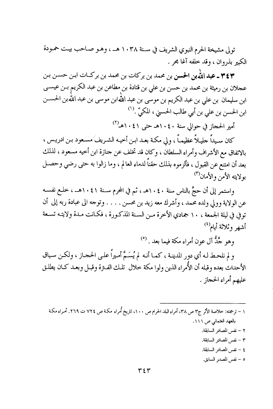 1 - ترجمته: خلاصة الأثر ج3 ص38، أمراء البلد الحرام ص100، تاريخ أمراء مكة ص724 ت269. أمراء مكة بالعهد العثماني ص111. 2 - نفس المصادر السابقة 3 - نفس المصادر السابقة 4 - نفس المصادر السابقة 5 - نفس المصدر السابق