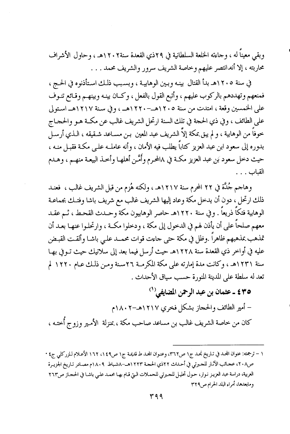 1 - ترجمته: عنوان المجد في تاريخ نجد ج1 ص362، وعنوان المجد ط قديمة ج1 ص149، 162 الأعلام للزركلي ج4 ص208، عجائب الآثار للجبرتي في أحداث 22ذي الحجة 1223هـ - 8 شباط 1809م مصادر تاريخ الجزيرة العربية، دراسة عبد العزيز نوار، حول تحليل للجبرتي للحملات التي قام بها محمد علي باشا في الحجاز ص263 وما بعدها، أمراء البلد الحرام ص329.