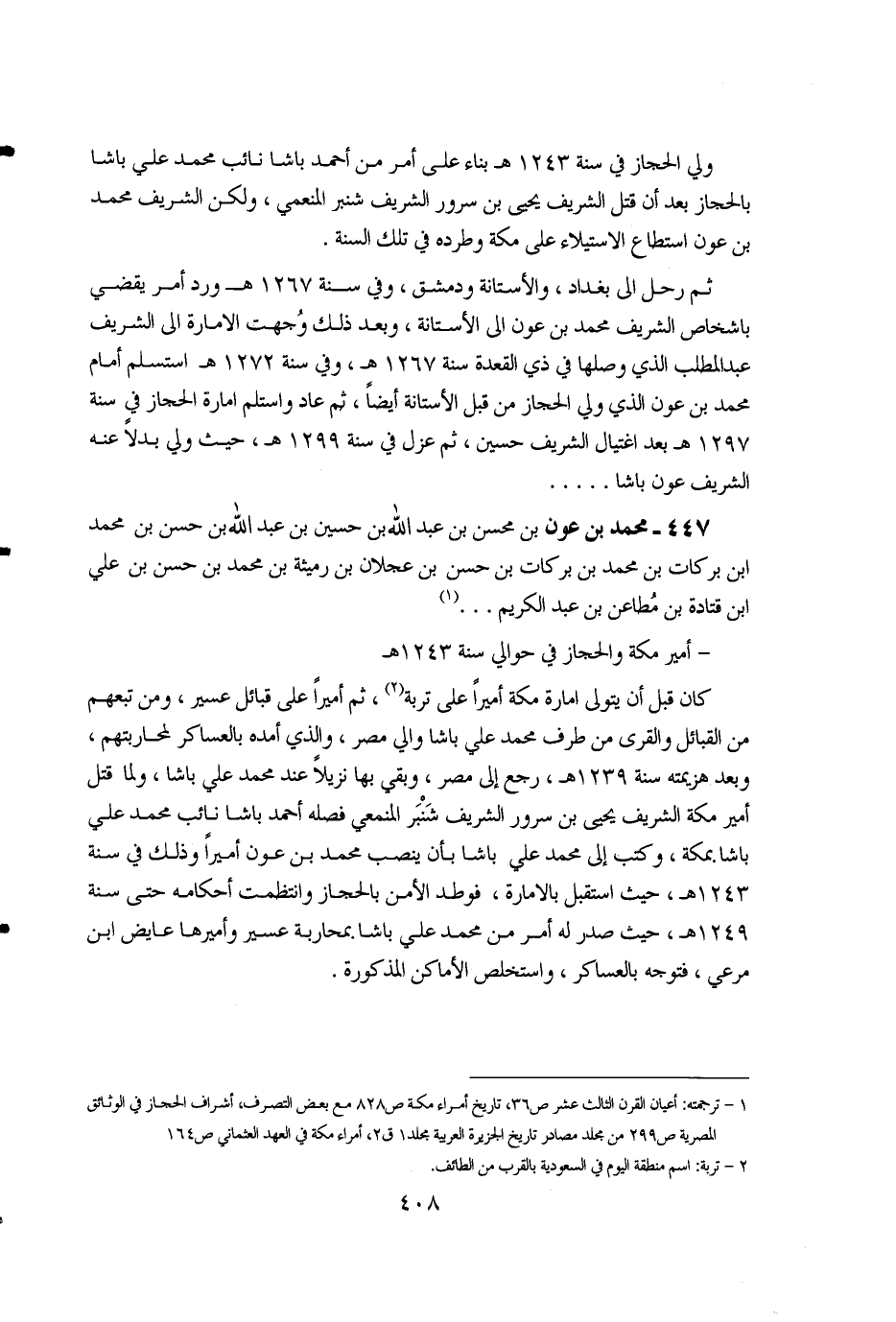 447 - محمد بن عون بن محسن بن عبد الله بن حسين بن عبد الله بن حسن بن محمد ابن بركات بن محمد بن بركات بن حسن بن عجلان بن رميثة بن محمد بن حسن بن علي ابن قتادة بن مطاعن بن عبد الكريم (1)