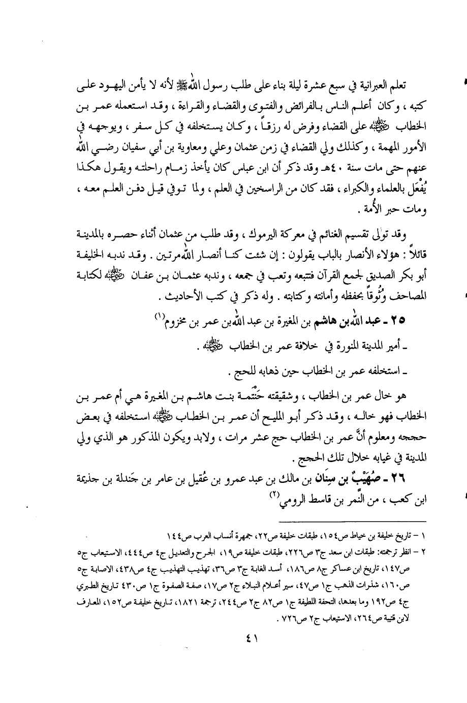 26 - صُهَيْبٌ بن سِنان بن مالك بن عبد عمرو بن عُقيل بن عامر بن جَندلة بن جذيمة ابن كعب، من النمر بن قاسط الرومي (2).