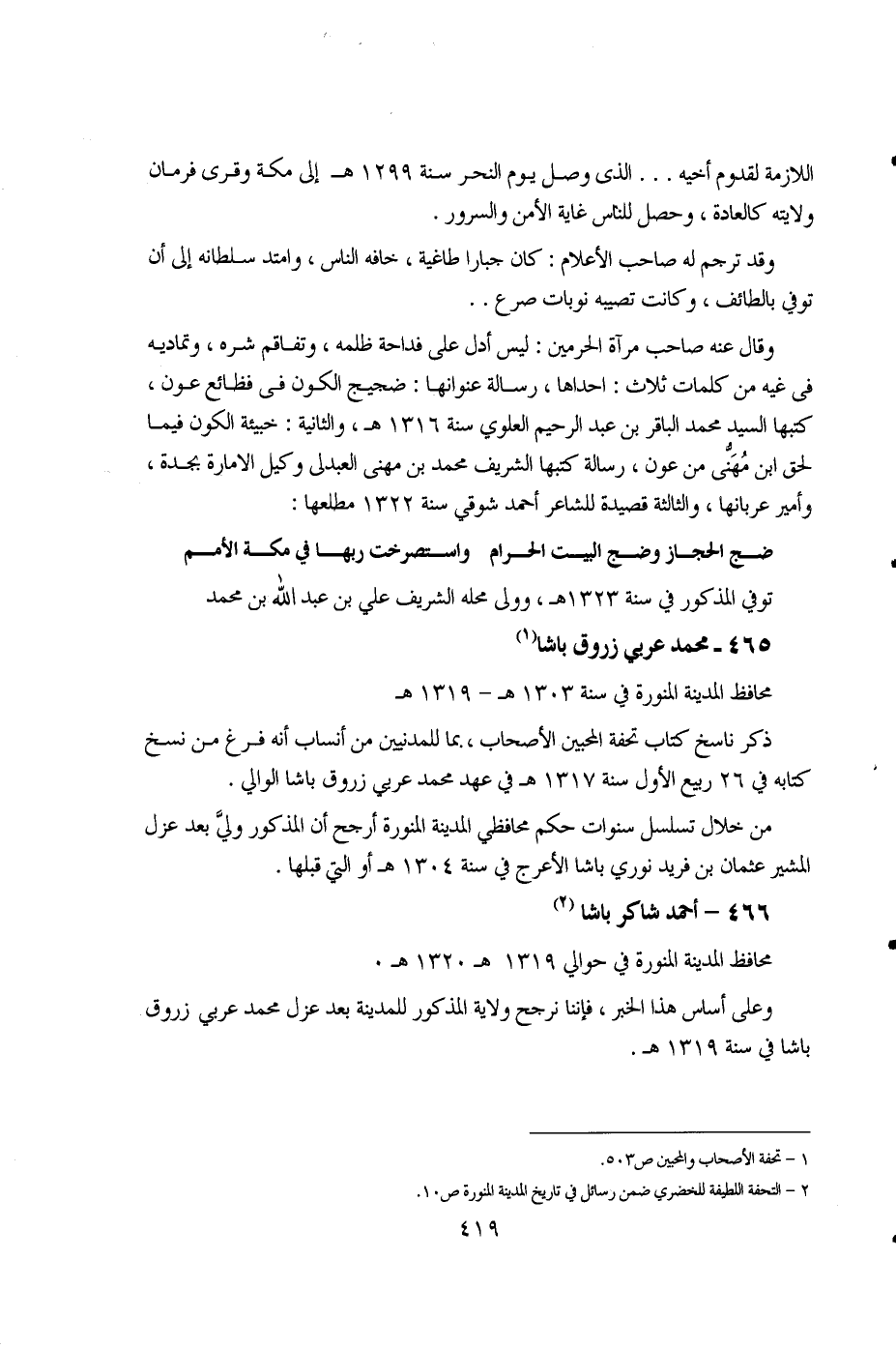 محافظ المدينة المنورة في سنة 1303هـ - 1319هـ