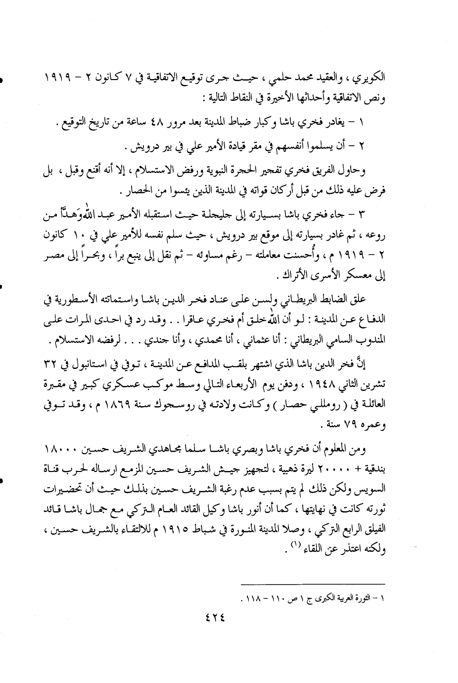 1 - الثورة العربية الكبرى ج1 ص110 - 118.