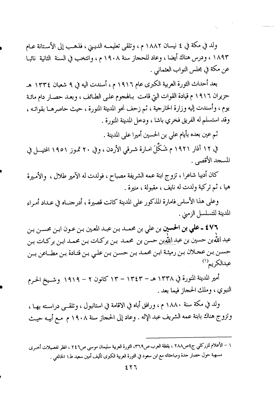 476 - علي بن الحسين بن علي بن محمد بن عبد المعين بن عون ابن إدريس بن عبد الله بن حسين بن عبد الله بن حسن بن محمد بن بركات بن محمد ابن بركات بن حسن بن عجلان بن رميثة ابن محمد بن حسن بن علي بن قتادة بن مطاعن بن عبد الكريم (1)
