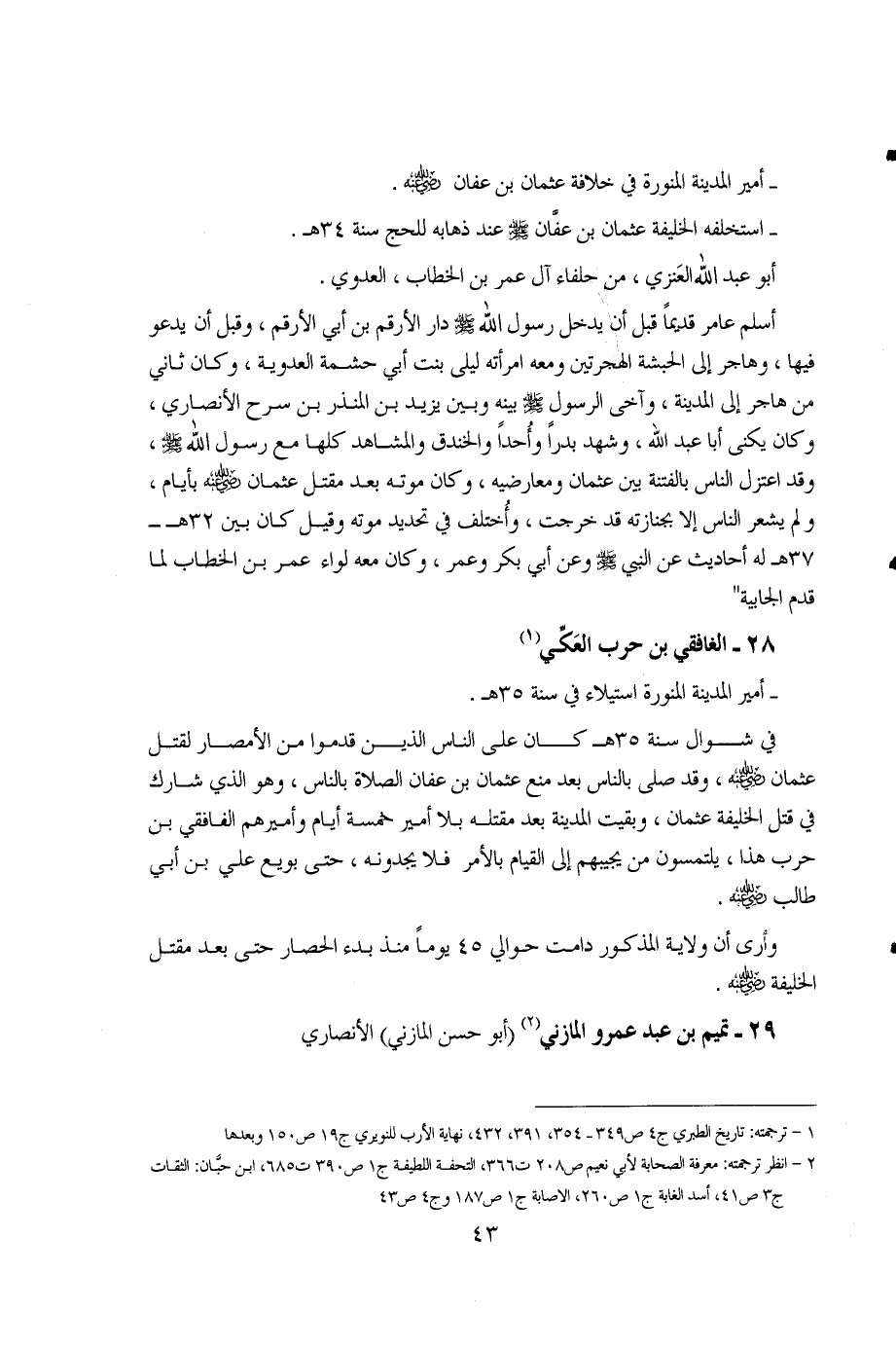 2 - انظر ترجمته: معرفة الصحابة لأبي نعيم ص208 ت366، التحفة اللطيفة ج1 ص 390 ت685، ابن حبَّان: الثقات ج3 ص41، أسد الغابة ج1 ص260، الإصابة ج1 ص187 وج4 ص43.