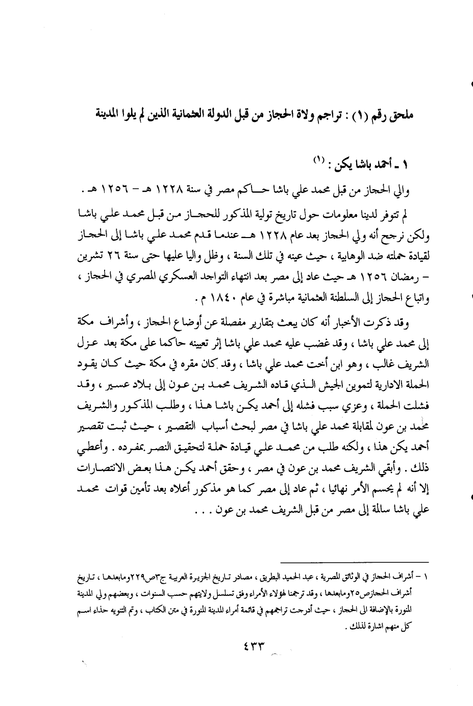 ملحق رقم (1): تراجم ولاة الحجاز من قبل الدولة العثمانية الذين لم يلوا المدينة