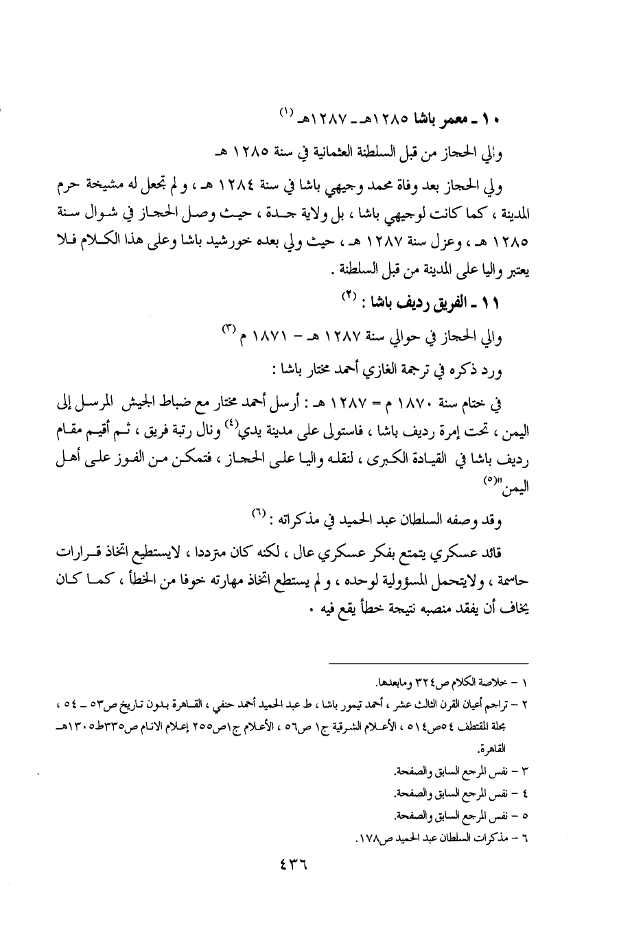 والي الحجاز في حوالي سنة 1287هـ- 1871م (3)
