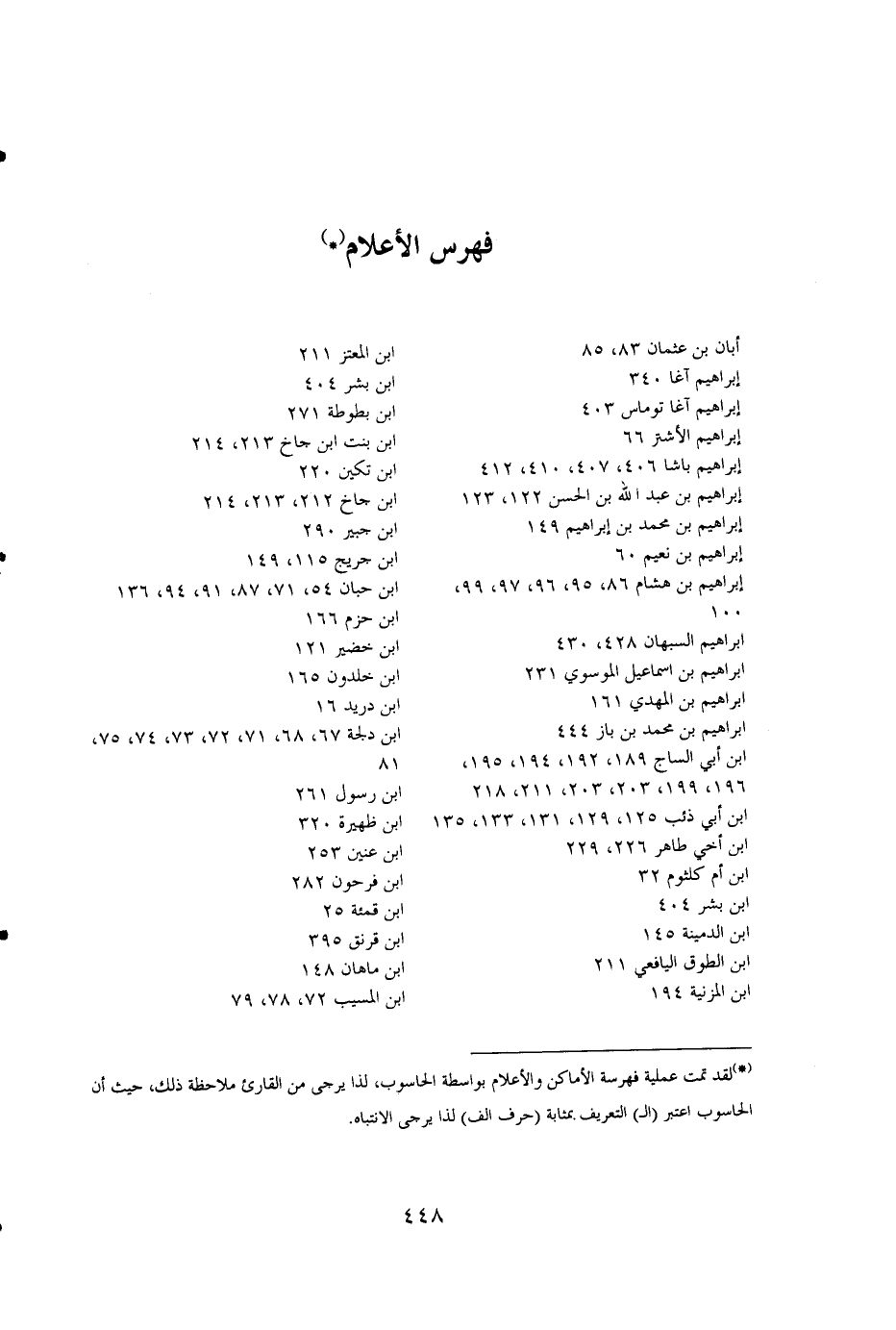 (*) لقد تمت عملية فهرسة الأماكن والأعلام بواسطة الحاسوب، لذا يرجى من القارئ ملاحظة ذلك، حيث أن الحاسوب اعتبر (الـ) التعريف بمثابة (حرف ألف) لذا يرجى الانتباه.
