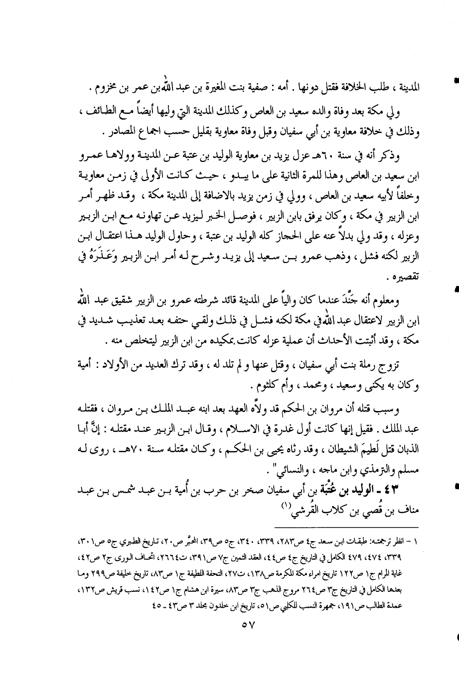 43 - الوليد بن عُتْبَة بن أبي سفيان صخر بن حرب بن أمية بن عبد شمس بن عبد مناف بن قُصي بن كلاب القُرشي (1).