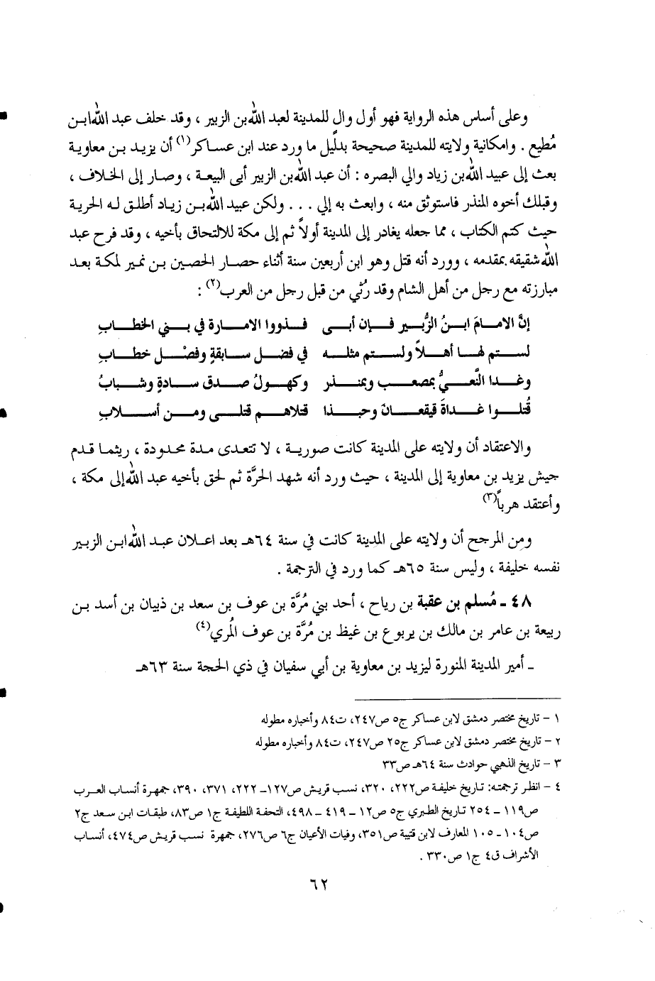 48 - مُسلم بن عقبة بن رياح، أحد بني مُرَّة بن عوف بن سعد بن ذبيان بن أسد بن ربيعة بن عامر بن مالك بن يربوع بن غيظ بن مُرَّة بن عوف المُري (4)