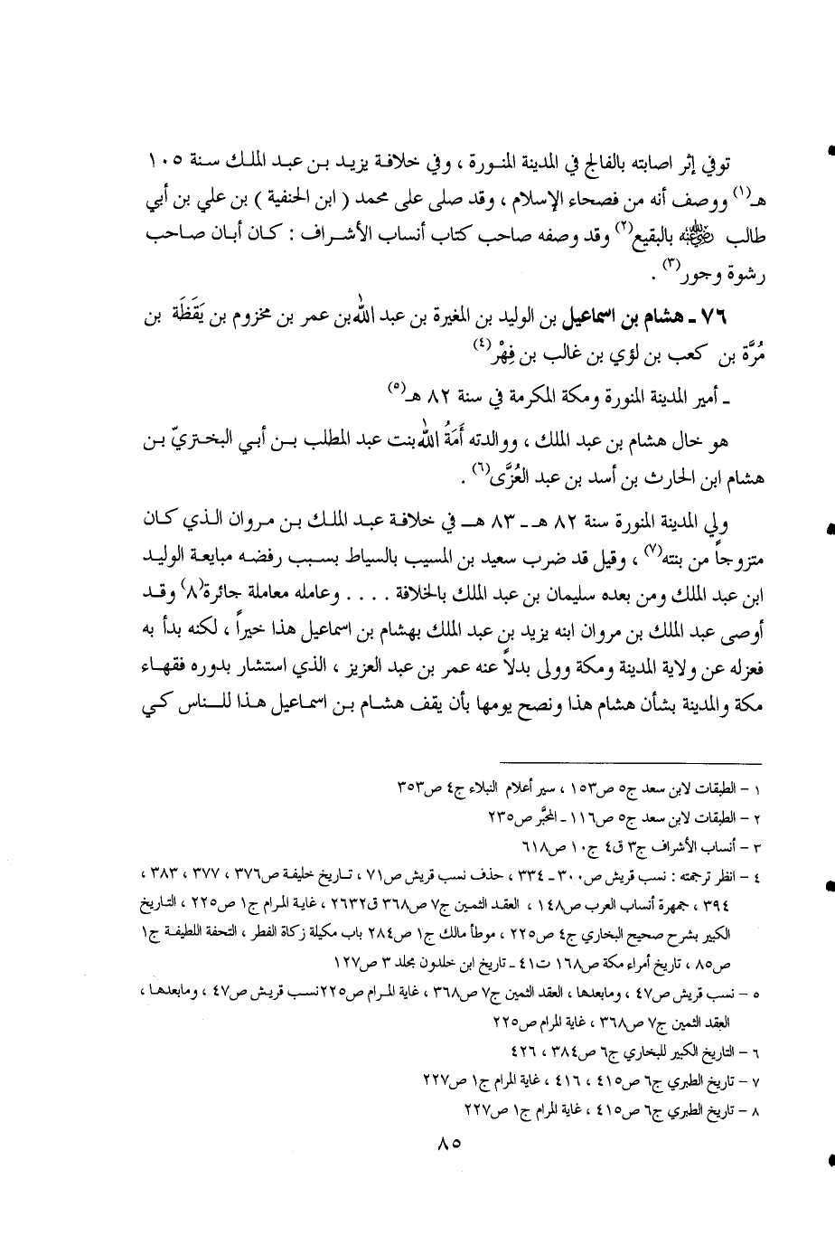 76 - هشام بن إسماعيل بن الوليد بن المغيرة بن عبد الله بن عمر بن مخزوم بن يَقَظَة بن مُرَّة بن كعب بن لؤي بن غالب بن فِهْر (4).