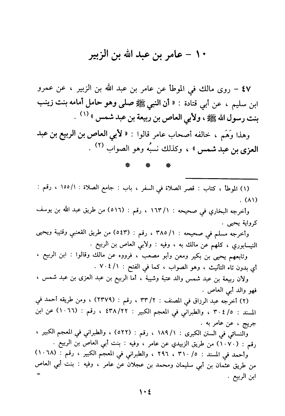 47 - رَوَى مَالِكٌ فِي الْمُوَطَّإِ عَنْ عَامِرِ بْنِ عَبْدِ الله بن الزبير عَن عَمْرو ابْن سُلَيْمٍ عَنْ أَبِي قَتَادَةَ (أَنَّ النَّبِيَّ صَلَّى اللَّهُ عَلَيْهِ وَسَلَّمَ صَلَّى وَهُوَ حَامِلٌ أُمَامَةَ بنت زَيْنَب بِنْتِ رَسُولِ اللَّهِ صَلَّى اللَّهُ عَلَيْهِ وَسَلَّمَ وَلأَبِي الْعَاصِ بْنِ رَبِيعَةَ بْنِ عَبْدِ شَمْسٍ)