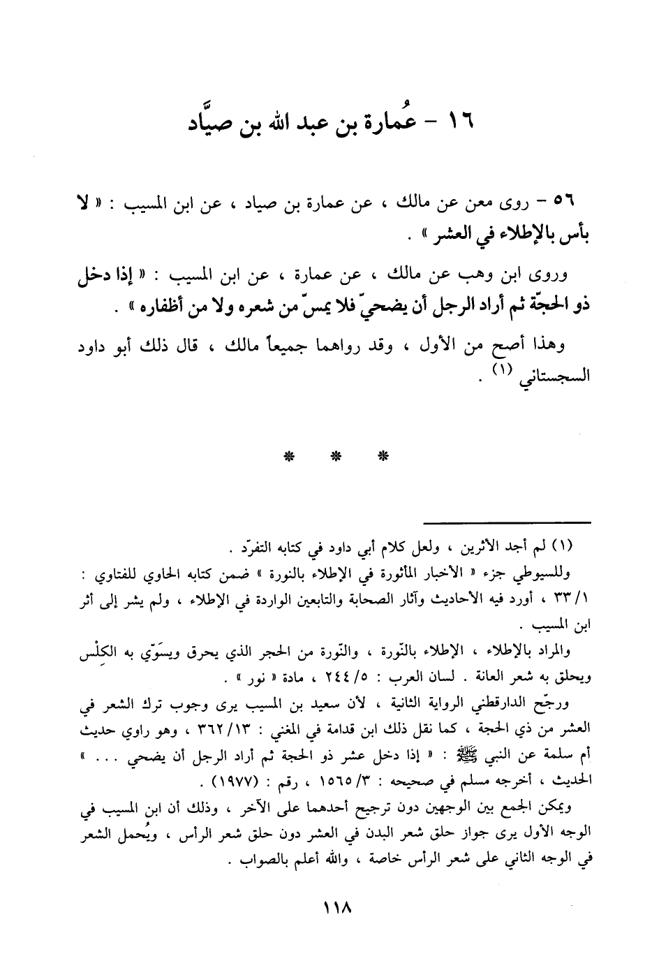 56 - رَوَى مَعْنٌ عَنْ مَالِكٍ عَنْ عُمَارَةَ بْنِ صَيَّادٍ عَنِ ابْنِ الْمُسَيِّبِ (لَا بَأْسَ بِالإِطْلاءِ فِي الْعُشْرِ)