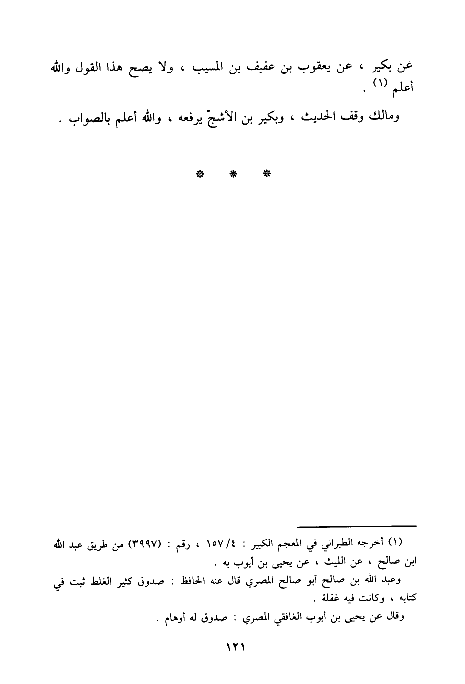 عَنْ بُكَيْرٍ عَنْ يَعْقُوبَ بْنِ عَفِيفِ بْنِ الْمُسَيِّبِ وَلا يَصِحُّ هَذَا الْقَوْلُ وَاللَّهُ أَعْلَمُ