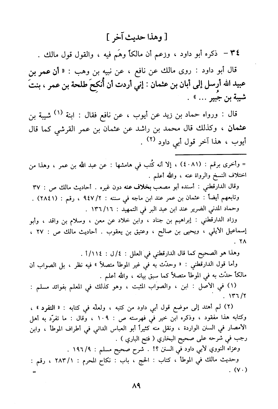 34 - ذَكَرَهُ أَبُو دَاوُدَ وَزَعَمَ أَنَّ مَالِكًا وَهِمَ فِيهِ وَالْقَوْلُ قَوْلُ مَالِكٍ