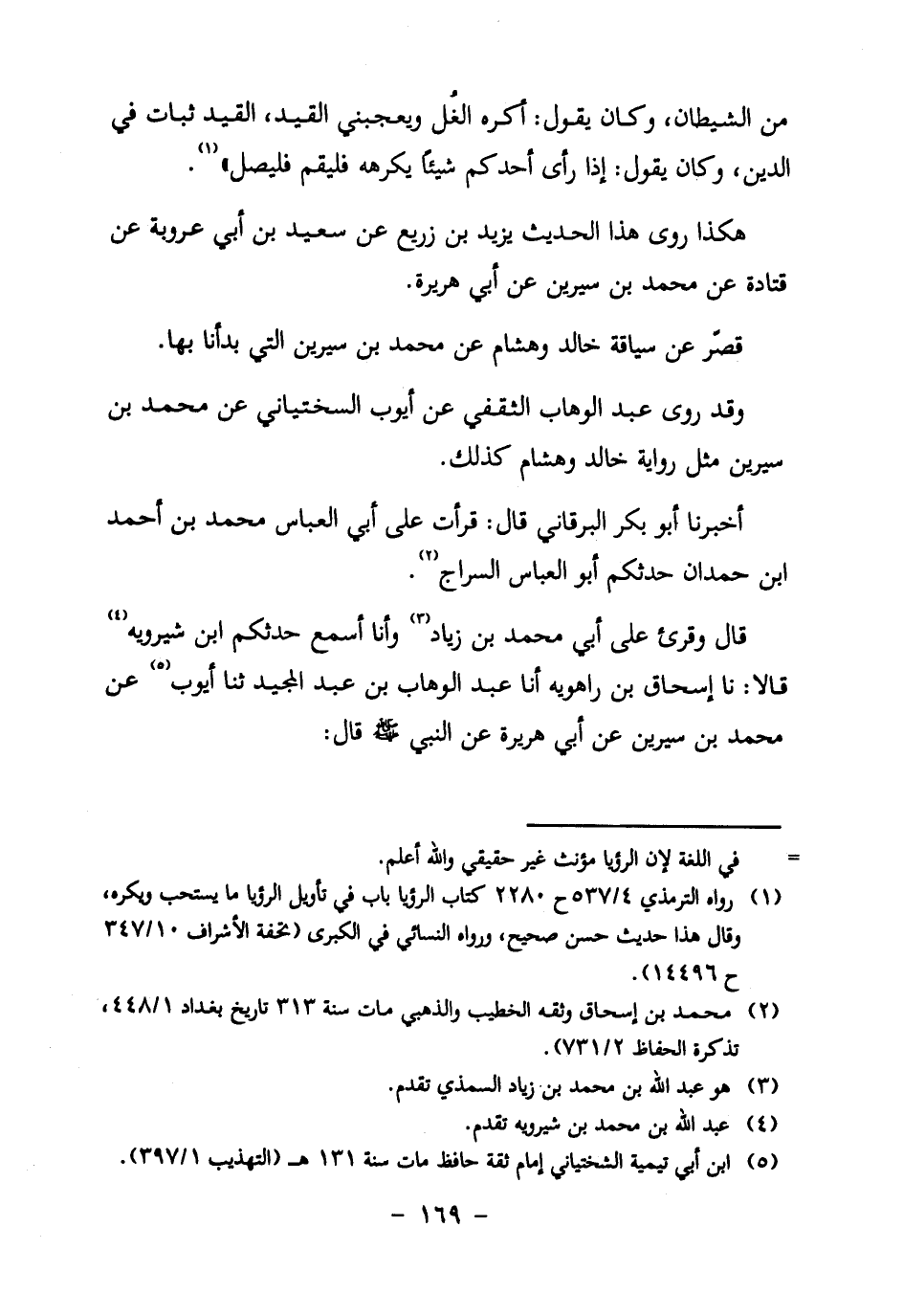 قَالَ: وَقُرِئَ عَلَى أَبِي مُحَمَّدِ بْنِ زِيَادٍ3 وَأَنَا أَسْمَعُ حَدَّثَكُمُ ابْنُ شِيرَوَيْهِ4 قَالا: نا إِسْحَاقُ بْنُ رَاهَوَيْهِ أنا عَبْدُ الْوَهَّابِ بْنُ عَبْدِ المجيد ثَنَا أَيُّوبُ5 عَنْ مُحَمَّدِ بْنِ سِيرِينَ عَنْ أَبِي هُرَيْرَةَ عَنِ النبي صَلَّى اللَّهُ عَلَيْهِ وَسَلَّمَ قال: