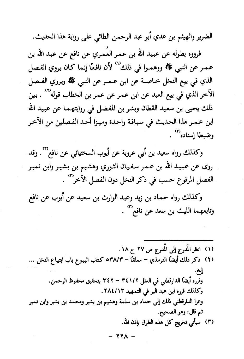 وكذلك رواه سعيد بن أبي عروبة عن أيوب السختياني عن نافع3. وقد روى عن عبيد الله بن عمر سفيان الثوري وهشيم بن بشير وابن نمير الفصل المرفوع حسب في ذكر النخل دون الفصل الآخر3.