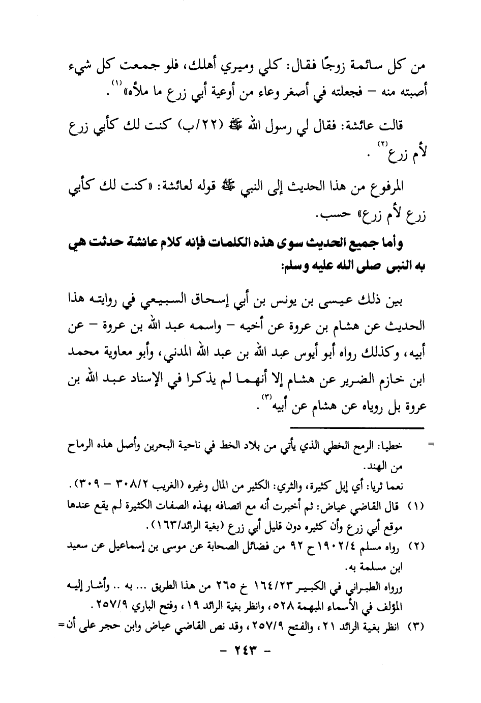 3. انظر بغية الرائد 21، والفتح 9/257، وقد نص القاضي عياض وابن حجر على أن الدارقطني في كتاب الأفراد نص ما ذهب إليه الخطيب هنا من رفع (كنت لك كأبي زرع ... ) .